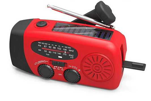Radio d'urgence de base et chargeur ; à vent ou à énergie solaire